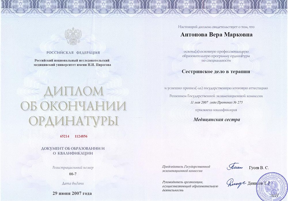 Российский национальный исследовательский медицинский университет имени Н.И. Пирогова (Сестринское дело в терапии)